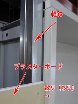 3.柱と壁: 柱の外面と壁面との段差や距離。